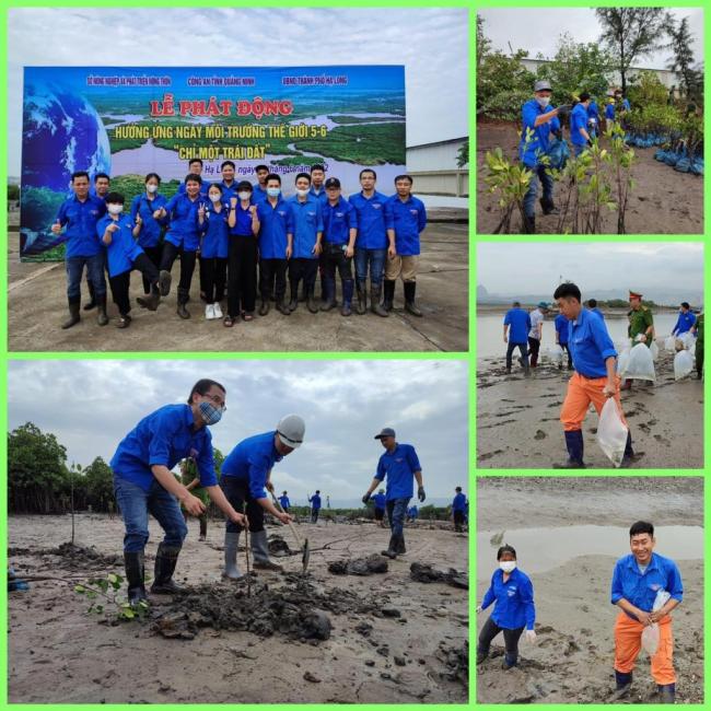 Đoàn Thanh niên Công ty ra quân trồng rừng ngập mặn trên địa bàn TP Hạ Long, hưởng ứng ngày Môi trường thế giới 2022.